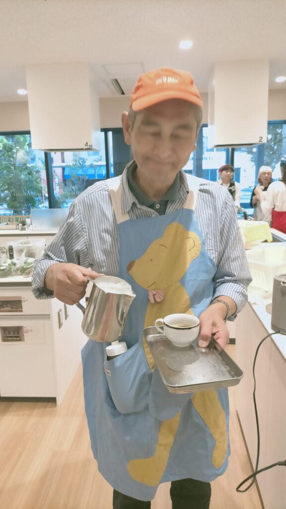 こんな飛び切りのおいしい笑顔で食べてくださる参加者がきてくれますよ!(できあがってつまみ食いの最中です。)