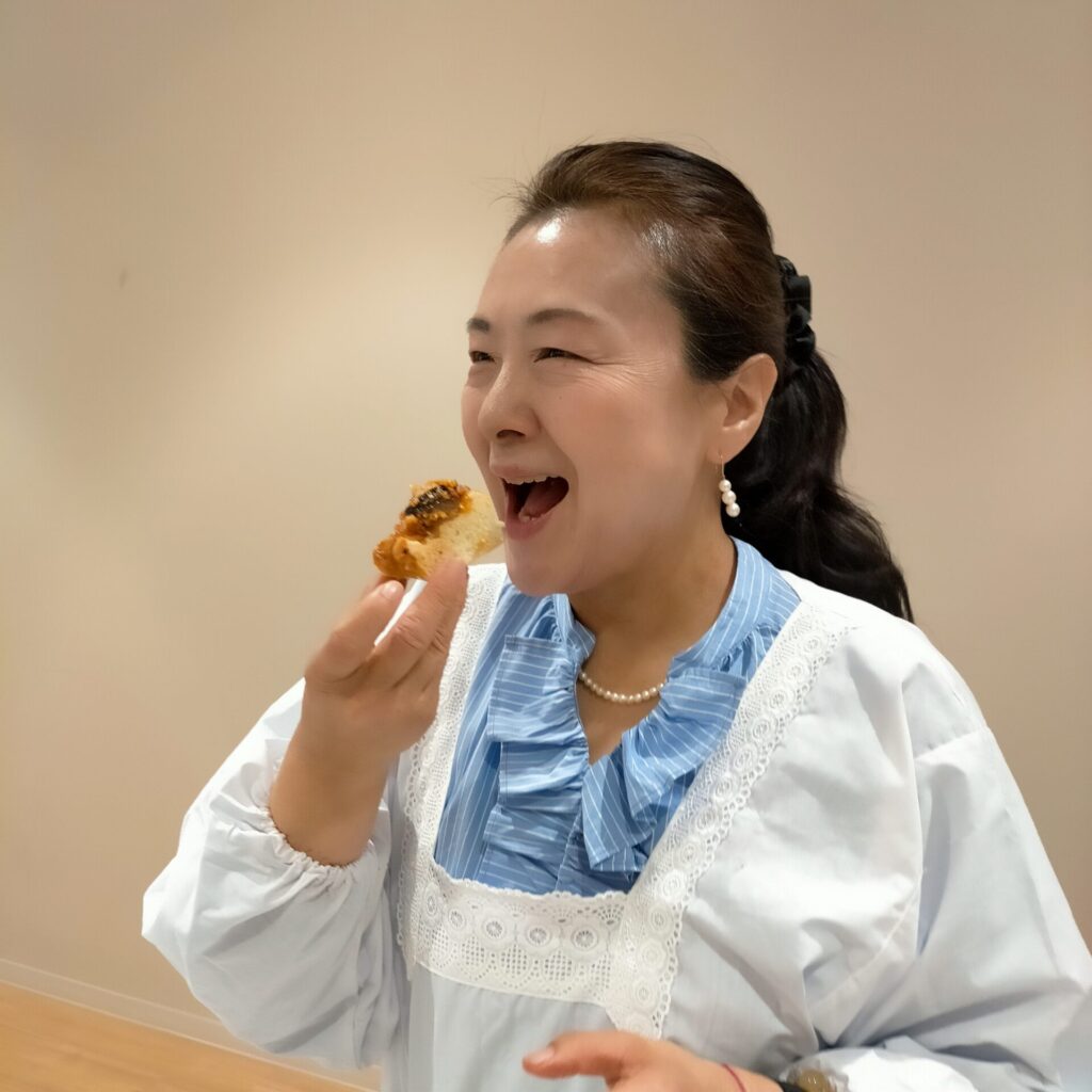 こんな飛び切りのおいしい笑顔で食べてくださる参加者がきてくれますよ!(できあがってつまみ食いの最中です。)